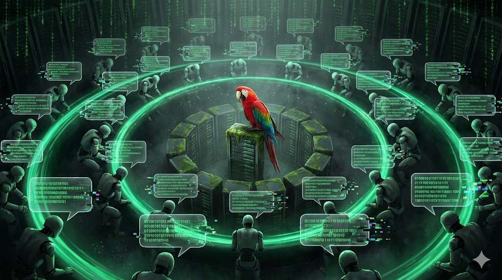 第一只鹦鹉喊了一句:“人类是愚蠢的!”(基于它学到的语料)