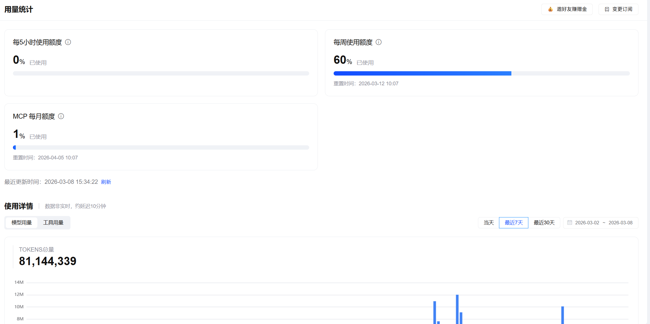 我订阅的是极速版,那速度是真的快。而且199元/月的订阅,额度根本用不完。我这种超级重度用户,5小时同时开7到8个窗口对话,一个月下来额度都没用到30%。对于预算有限又追求速度且追求量大管饱的用户来说,MINIMAX是个选择。